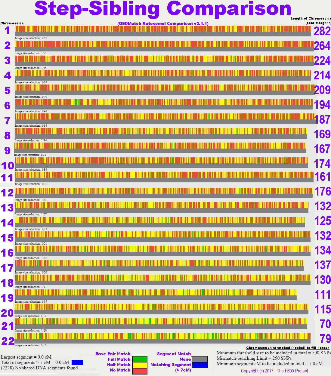 Comparing Step Siblings (graphical segments) GEDMatch comparison graph of two step-siblings to highlight the lack of any matching areas. |